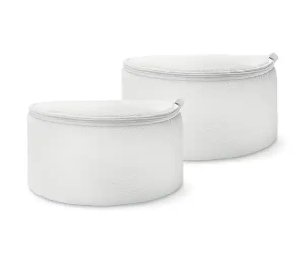 2 BH-Wäschenetze Farbe: Weiß Material: 100% Polyester Maße: Ø je ca. 18 cm Höhe je ca. 10 cm Weich gepolstert – BHs behalten länger ihre FormAus recyceltem MaterialPassend für BHs bis D-CupSchonen BHs, Wäsche und WaschmaschineBesonders feinmaschigFarbiger Reißverschluss mit Zipper-Abdeckung