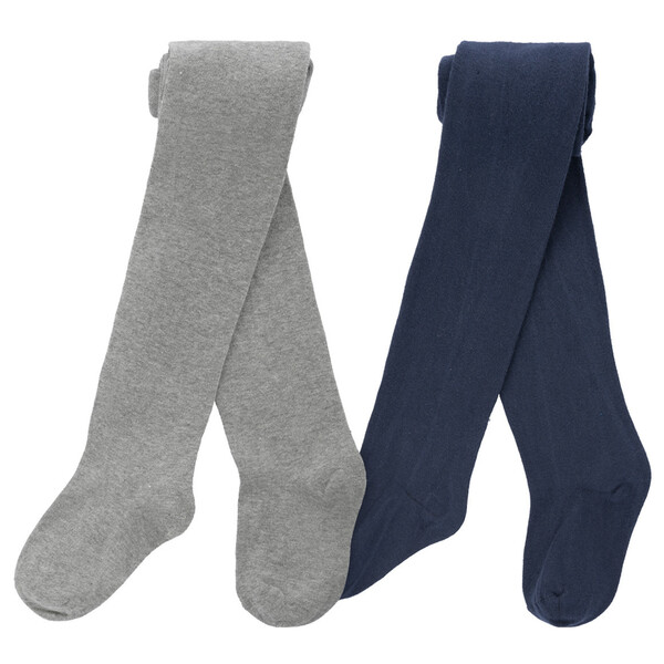 Gleich zwei neue für alle Fälle! Zwei unifarbene Strumpfhosen in Dunkelblau und in hellgrauer Melange-Optik. Jeweils mit elastischem Bund für einen bequemen Sitz.