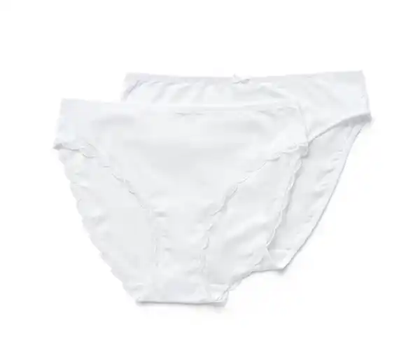 2 Slips, weiß Farbe: Weiß Material: 91% Polyamid, 9% Elasthan Spitze 85% Polyamid, 15% Elasthan Softe Microtouch-Qualität1x mit zarter Spitze, 1x mit Wäscheschleifchen Mit hochwertigem Markenelasthan für Langlebigkeit und hohe WaschbeständigkeitBaumwollzwickel