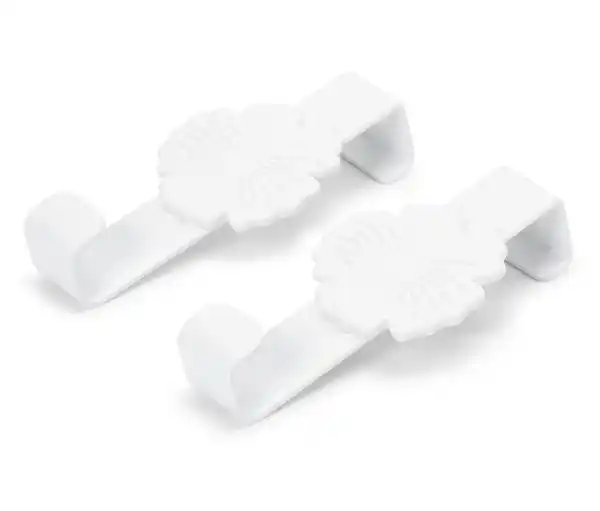 2 Türhaken Farbe: Weiß Material: Türhaken Stahl, pulverbeschichtet Klebepunkte 100% Silikon Maße: Je ca. 10 x 2 cm Ø Silikonpunkte je ca. 0,5 cm Inhalt: Inkl. 4 selbstklebender Silikon-Punkte Tragkraft: Max. 5 kg Gebrauchsanweisung: Passend für Türen, Regale, Schranktüren etc. mit einer Falzstärke bis zu 1,8 cm Dekoratives Blumen-DesignEinfaches Anbringen an der Oberkante der Tür – kein Bohren oder KlebenAus robustem Stahl