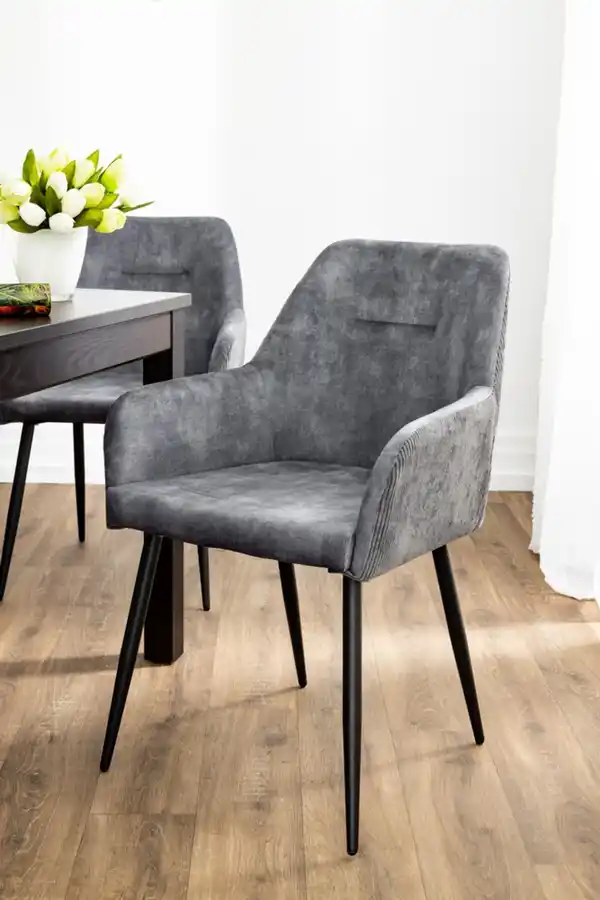 Prestige Home Living Indoor 2er-Set Esszimmerstuhl, gepolstert aus Samtbezug mit Metallstruktur, ca. 60,5 x 57,5 x 87,5 cm – AnthrazitVerleihen Sie Ihrem Esszimmer eine elegante Note mit dem 2er-Set Esszimmerstühlen von Prestige Home. Die stilvollen Stühle überzeugen durch ihren luxuriösen Samtbezug in modernem Anthrazitton und bieten sowohl optisch als auch funktional eine erstklassige Lösung für Ihr Zuhause.Produktmerkmale / Technische Daten: Farbe: Sitz Anthrazit, Beine Schwarz Bezug: Hochwertiger Samtbezug, weich und edel Sitzfläche gepolstert für hohen Komfort Beine: Metall mit schwarzer Pulverbeschichtung, stabil und modern Ideal für Essbereich, Wohnzimmer oder als zusätzliche Sitzgelegenheit Maße (pro Stuhl): Gesamtmaße: ca. 60,5 x 57,5 x 87,5 cm Sitzfläche: ca. 45 x 45 x 49 cm Armlehnenhöhe: ca. 64 cm Vorderbein: 48,5 cm, Hinterbein: 41 cm Beinabstand: 53 cm, Beindurchmesser: 28–16 mm Lieferumfang: 2x Esszimmerstuhl gepolstert aus Samtbezug in Anthrazit Besondere Merkmale: Komfortable Sitzfläche für längere Mahlzeiten und Gespräche Robuste Metallbeine mit schwarzer Pulverbeschichtung Stilvoller und zeitloser Look, passend zu verschiedenen Einrichtungsstilen Keywords: Esszimmerstuhl, Wohnzimmerstuhl, Bürostuhl, gepolsterter Stuhl, Samtbezug, Anthrazit Stuhl, 2er-Set Stühle, moderne Esszimmermöbel, Polsterstuhl, Designerstuhl, Metallbeine, schwarzer Pulverbeschichtungsbezug, bequemer Stuhl, eleganter Esszimmerstuhl, Luxus Stuhl, Samtstuhl, Möbel für Esszimmer, stilvolle Sitzmöbel, komfortabler Esszimmerstuhl, Samt, Stuhl mit Armlehnen, moderne Einrichtung, Stuhl für Essbereich, modernes Design, hochwertiger Esszimmerstuhl