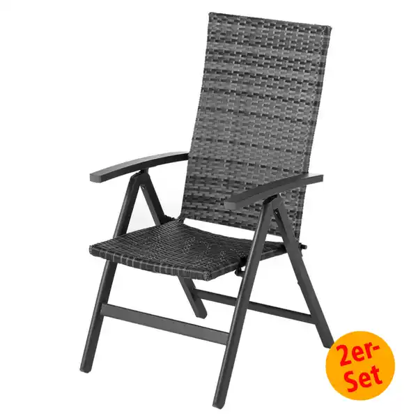 2er Set Geflecht-Klappsessel "Genua", Grau-Anthrazit