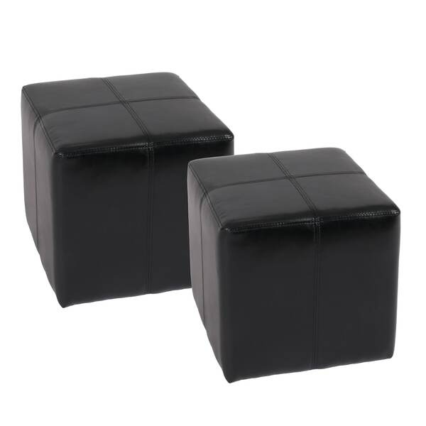 2er-Set Sitzhocker Carrara, Leder + Kunstleder, 36x36x36cm ~ schwarz