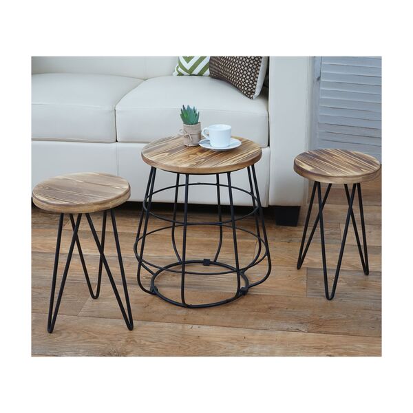 2er-Set Sitzhocker mit Tisch MCW-A80, Sitzgruppe, Industriedesign Echtholz MVG-zertifiziert