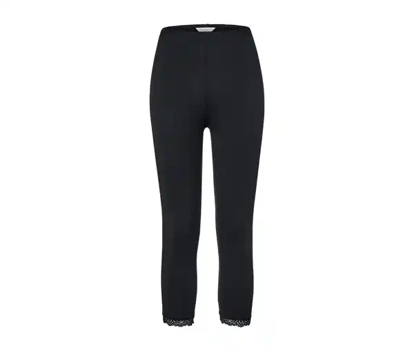 3/4-Leggings mit Spitzenborte, schwarz Farbe: Schwarz Material: 95% Baumwolle, 5% Elasthan (Creora®) Maße: Innenbeinlänge ca. 51 cm Passform: Skinny Fit Damenhose in weicher Baumwoll-Stretch-QualitätElastischer Komfortbund ‒ kein EinschnürenOhne störende SeitennähteSpitzenborte am SaumBlickdichtMit Elasthan: formbeständig, perfekter Sitz, hoher TragekomfortGOTS organic – in conversion, zertifiziert durch CU 809415Diese Leggings fördern den Anbau nachhaltiger Baumwolle.
