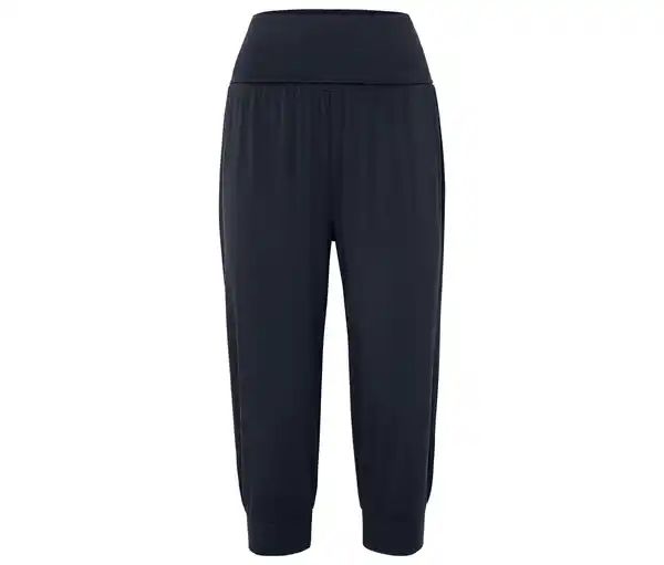3/4-Yogahose Farbe: Navy Material: 93% Viskose, 7% Elasthan (Creora®) Maße: Innenbeinlänge ca. 50 cm Passform: Comfort Fit Bequemer Schnitt mit breitem, elastischem Umschlagbund ‒ nicht fixiertAngesetzte Bündchen an den BeinabschlüssenWeiche Qualität mit hohem ViskoseanteilSoftes, elastisches Material mit der Faser Creora® – für optimale BewegungsfreiheitDiese Yogahose beinhaltet Fasern aus nachhaltigem Holz.