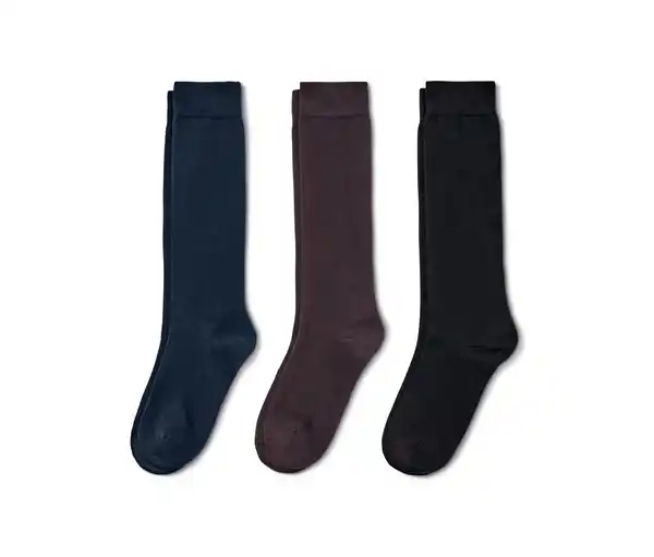 3 Paar Kniestrümpfe Farbe: 1x dunkelbraun, 1x schwarz, 1x dunkelblau Material: 75% Baumwolle (aus ökologsichem Anbau), 23% Polyamid, 2% Elasthan (Creora®) Piquébündchen – für Extra-KomfortExtraflache ZehennahtVerstärkte Spitze und FerseWeiche Qualität mit Bio-BaumwolleMit Elasthan: formbeständig, perfekter Sitz, hoher Tragekomfort
