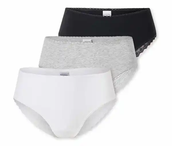 3 SCHIESSER Brazilian-Slips, schwarz, weiß, grau meliert Farbe: 1x schwarz, 1x weiß, 1x grau meliert Material: 95% Baumwolle, 5% Elasthan Sonstige Hinweise: Stylenummer Schiesser: 182905-901 Hersteller: SCHIESSER GmbH, Schützenstraße 18, 78315 Radolfzell, Deutschland E-Mail: info@schiesser.com Brazilian Slips für Damen im praktischen Dreierpack (schwarz, weiß, grau meliert)Aus der SCHIESSER Serie »Modern Multipacks«Feminine Spitzenbänder an Bund und BeinabschlüssenIn angenehm weicher, elastischer Single-Jersey-QualitätUnsere Models tragen Größe M/38