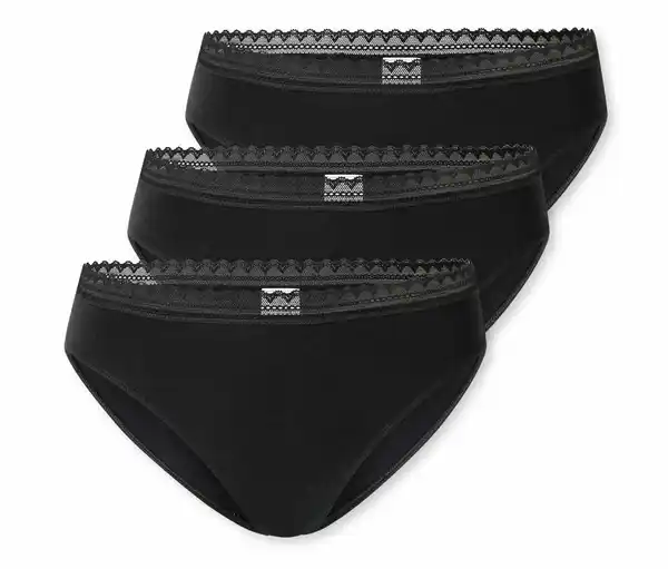 3 SCHIESSER Rio-Slips, schwarz Farbe: 3x schwarz Material: 95% Baumwolle, 5% Elasthan Sonstige Hinweise: Stylenummer Schiesser: 182908-000 Hersteller: SCHIESSER GmbH, Schützenstraße 18, 78315 Radolfzell, Deutschland E-Mail: info@schiesser.com Schwarze Rio-Slips für Damen im DreierpackAus der SCHIESSER Serie »Modern Multipacks«Feminine Spitzenbänder an BundIn angenehm weicher, elastischer Single-Jersey-QualitätUnsere Models tragen Größe M/38