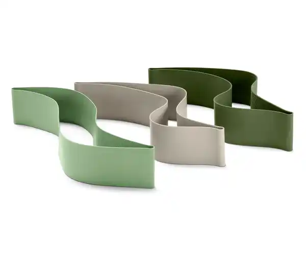3 Trainingsbänder Farbe: 1x taupe, 1x hellgrün, 1x dunkelgrün Material: 100% Latex, frei von löslichen Stoffen (Proteine) Maße: Bänder je ca. 26,5 x 4 cm Stärke 1x ca. 0,55 mm, 1x ca. 0,75 mm, 1x ca. 1,05 mm Gewicht: Gewicht 1x ca. 11 g, 1x ca. 14 g, 1x ca. 19 g Warnhinweise: Das Erzeugnis ist unter Verwendung von Naturkautschuklatex hergestellt, der Allergien verursachen kann Für vielseitiges Krafttraining sowie Koordinations- und BeweglichkeitsübungenAus Latex – besonders reißfestIn 3 Zugstärken: taupe – leicht, hellgrün – mittel, dunkelgrün – starkKlein und platzsparendAnleitung online abrufbar