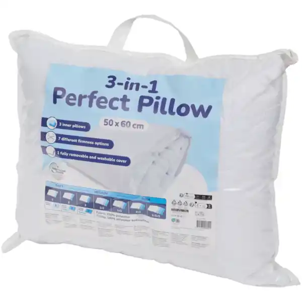 Mit dem 3-in-1 Perfect Pillow schläfst du so, wie du es dir wünschst. Stelle einfach deine ideale Festigkeit ein, indem du die einzelnen Kissen kombinierst. Ideal für Rücken-, Seiten- oder Bauchschläfer, die nach Abwechslung und Komfort suchen. Der abnehmbare Bezug erleichtert die Reinigung. Perfekt für alle, die eine erfrischende und komfortable Nachtruhe lieben.