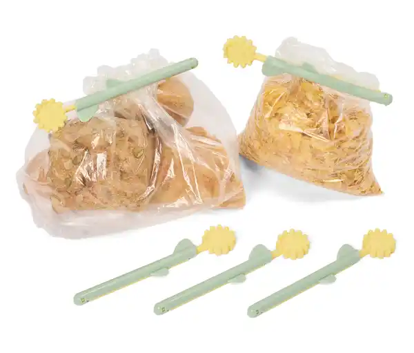 5 Aromaclips in Blumenform Farbe: Grün-gelb Material: Polypropylen Maße: Länge ca. 15 cm Breite Blume ca. 28 mm Gebrauchsanweisung: Nicht tiefkühlgeeignet Zum Verschließen von angebrochenen LebensmitteltütenSchnellverschlüsse für angebrochene Tüten, Beutel etc.Halten den Inhalt länger frischWiederverwendbar