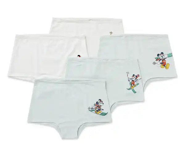 5 Mädchen-Pantys »Mickey and Friends« Farbe: 2x weiß, 3x hellblau, je mit unterschiedlichem platziertem Mickey-Mouse-Print Material: 95% Baumwolle (Unterstützt die Initiative Cotton made in Africa), 5% Elasthan (Creora®) Sonstige Hinweise: Größenlauf/Alter: Gr. 86/92 (ca. 12 – 24 M.) Gr. 98/104 (ca. 2 – 4 J.) Gr. 110/116 (ca. 4 – 6 J.) Gr. 122/128 (ca. 6 – 8 J.) Gr. 134/140 (ca. 8 – 10 J.) Weiche Single-Jersey-Qualität Mit Elasthan: formbeständig, perfekter Sitz, hoher Tragekomfort5 verschiedene DessinsAlle Unterhosen mit Baumwollzwickel Unterstützt die Initiative Cotton made in AfricaDiese Pantys unterstützen die Farmer*innen.