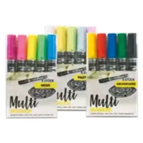 zeichnet auf Metall, Stein, Holz, Textil u.v.m., in Grund-, Neon- oder Metallfarben