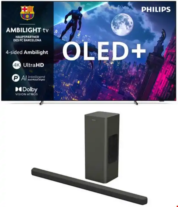 65OLED950/12 164 cm (65") OLED+ Ambilight TV metall inkl. TAB8200/10 2.1 Soundbar mit Subwoofer