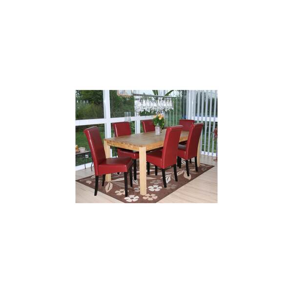 6er-Set Esszimmerstuhl Lecce II, Leder ~ rot, dunkle Beine
