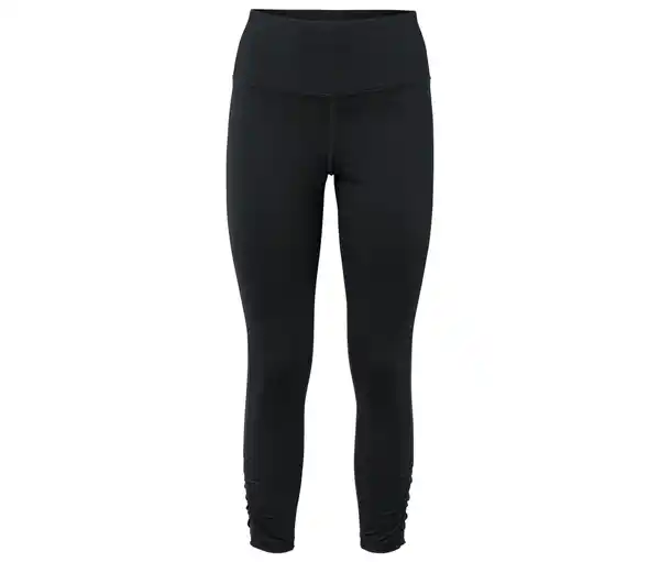 7/8-Sportleggings Farbe: Schwarz Material: 88% Polyester, 12% Elasthan (Creora®) Maße: Innenbeinlänge ca. 65 cm Passform: Skinny Fit Atmungsaktiv, feuchtigkeitstransportierend und schnelltrocknend durch DryActive Plus-AusrüstungMit leichter Raffung am BeinabschlussBund mit innenliegender Tasche für z.B. SchlüsselDamenhose mit extraflachen NähteSoftes, elastisches Material mit der Faser Creora® – für optimale Bewegungsfreiheit