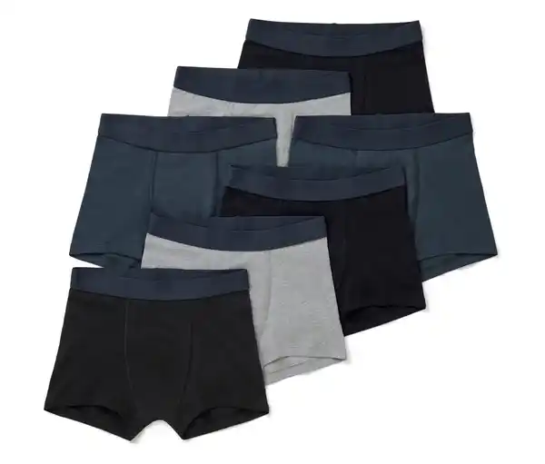 7 Kinder-Slipboxer, schwarz Farbe: 2x grau meliert, 2x dunkelblau, 3x schwarz Material: 95% Baumwolle, 5% Elasthan (Creora®) Sonstige Hinweise: Größenlauf/Alter: Gr. 122/128 (ca. 6 – 8 J.) Gr. 134/140 (ca. 8 – 10 J.) Gr. 146/152 (ca. 10 – 12 J.) Gr. 158/164 (ca. 12 – 14 J.) Gr. 170/176 (ca. 14 – 16 J.) Kinder-Unterhosen ohne störende SeitennähteMit Elasthan: formbeständig, perfekter Sitz, hoher Tragekomfort Weiches, elastisches BündchenDoppelte Stofflage im vorderen Bereich3 verschiedene Dessins