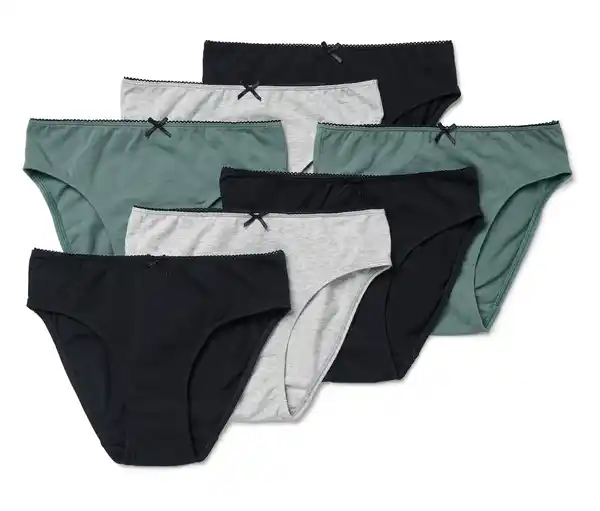 7 Mädchen-Slips Farbe: 3x schwarz, 2x salbeigrün, 2x grau meliert Material: 95% Baumwolle (aus ökologischem Anbau), 5% Elasthan (Creora®) Sonstige Hinweise: Größenlauf/Alter: Gr. 122/128 (ca. 6 – 8 J.) Gr. 134/140 (ca. 8 – 10 J.) Gr. 146/152 (ca. 10 – 12 J.) Gr. 158/164 (ca. 12 – 14 J.) Gr. 170/176 (ca. 14 – 16 J.) Weiche Single-Jersey-QualitätMit Elasthan: formbeständig, perfekter Sitz, hoher Tragekomfort3 verschiedene DessinsMit BaumwollzwickelGOTS organic, zertifiziert durch CU 809415