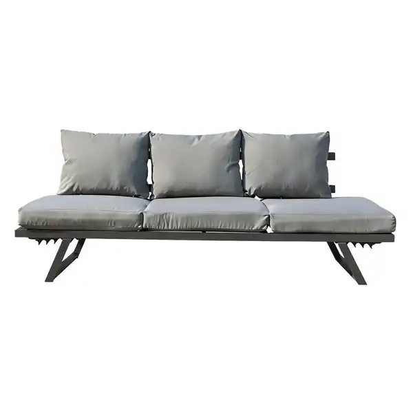 CHILLROI 7tlg. Alu-Loungebank Arruzo Multifunktionsbank mit verstellbarem Kopfteil - ca. 200 x 69 x H 31-71 cm Entspannen Sie sich auf unserer stilvollen und modernen Loungebank aus Aluminium Mit ihrem schlanken Design und ihrer hochwertigen Verarbeitung ist diese Loungebank das perfekte Möbelstück für jede Terrasse, jeden Balkon oder jeden Garten Das Gestell der Loungebank ist aus robustem und wetterbeständigem Aluminium gefertigt, was für eine lange Lebensdauer sorgt Die Loungebank bietet Platz für 2 bis 3 Personen und ist mit ihren weichen Kissen unglaublich bequem Die Kissen sind aus strapazierfähigem und wasserabweisendem Material gefertigt und lassen sich leicht reinigen Die Montage der Loungebank ist schnell und einfach, so dass Sie sie in kürzester Zeit in Ihrem Garten oder auf Ihrer Terrasse aufstellen können Das moderne und elegante Design der Loungebank passt perfekt zu jeder Einrichtung und macht sie zum idealen Möbelstück Maße 200 x 69 x 31-71 cm Betthöhe 31 cm Bettbreite 69 mLieferumfang 1x CHILLROI 7tlg. Alu-Loungebank Arruzo Multifunktionsbank mit verstellbarem Kopfteil - ca. 200 x 69 x H 31-71 cm