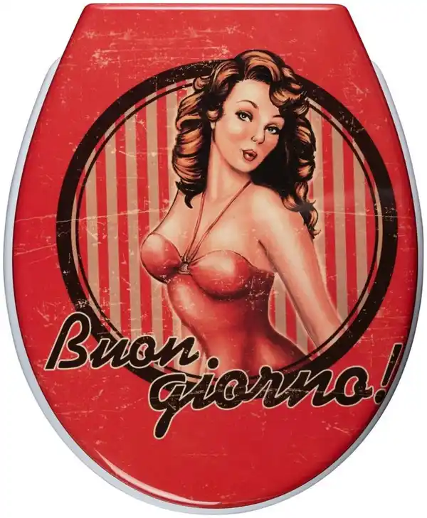 Dieser Design WC Sitz besticht durch seine klassische Form. Auf der Deckeloberseite hat er ein schönes Motiv. Deckelinnenseite sowie Ringober- und Unterseite sind weiss.