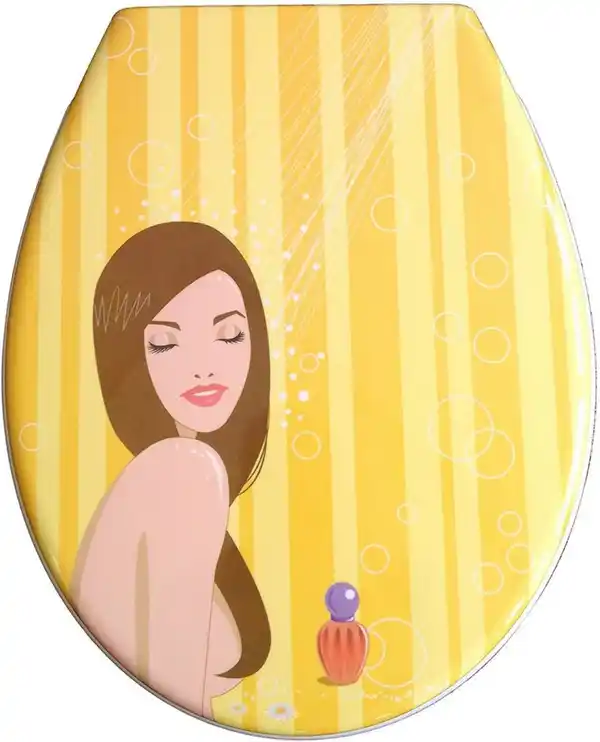 Dieser Design WC Sitz besticht durch seine klassische Form. Auf der Deckeloberseite hat er ein schönes Motiv. Deckelinnenseite sowie Ringober- und Unterseite sind weiss.