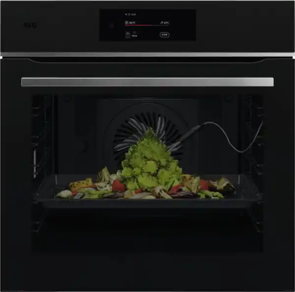 Elektro-Backofen, 71 l Garraum, Temperaturregelung: 30-300 Grad, Automatikprogramme, Kochassistent 2.0, Schnellaufheizung, Selbstreinigungs-System, Pyrolytische Selbstreinigung, 2-fach Teleskop-Auszug, Backofentür mit sanftem Schließmechanismus, kühle Front, Beheizungsarten Aufbacken, Auftauen, Aufwärmen, Dörren, Einkochen, Niedrigtemperaturgaren, Gären, SteamCrisp Funktion (Dampfunterstützung mit zusätzlicher Zugabe von Wasser auf dem Boden den Ofens), Grill, Heißluftgrillen, Heißluft, Ober-/Unterhitze, Oberhitze getrennt regelbar, Unterhitze getrennt regelbar, Pizza-Stufe, Schmoren, Tellerwärmer, Feuchte Umluft, Warmhalten, Touch-Control-Bedienung, Display, Abschaltautomatik, Halogenbeleuchtung, Steuerung über MyAEG App möglich, per App steuerbar, Speisenthermometer, Energieeffizienzklasse A++, Go Green Vertriebskennzeichen, Made in Germany, Breite: 59,5 cm, Höhe: 59,4 cm, Tiefe: 56,7 cm