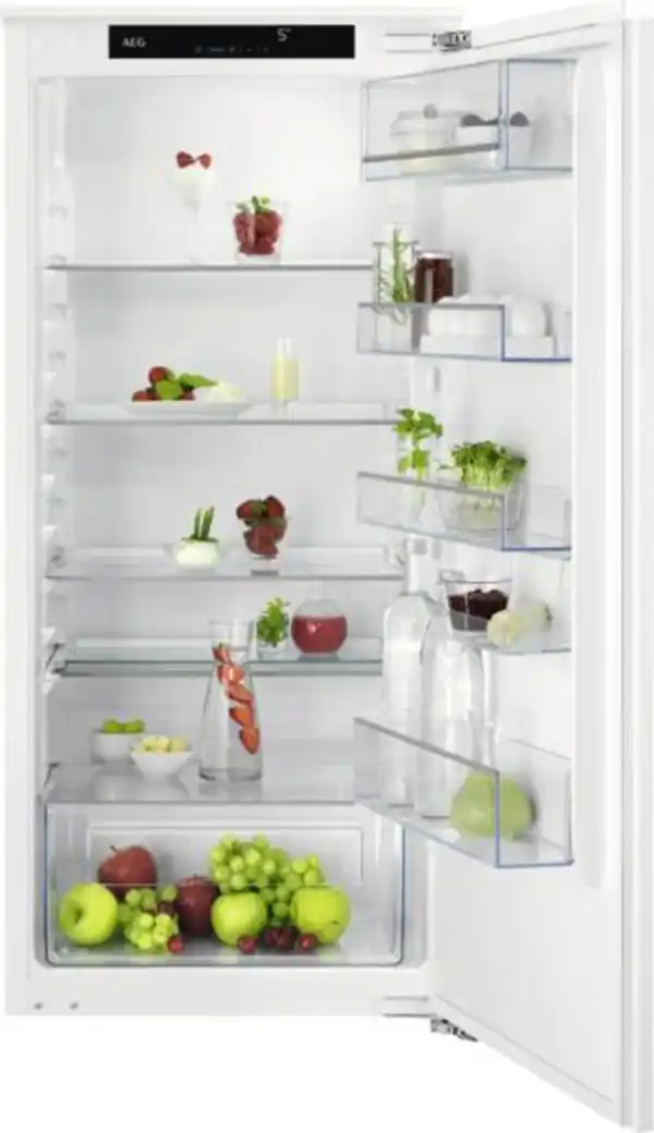 Einbau-Kühlschrank, Vollraum, Festtürmontage, Rauminhalt Kühlen: 203 l, Abtauautomatik Kühlen, Super-Kühlen, Glasablageflächen: 5, Obst-/Gemüsebehälter: 1, LED-Beleuchtung, Display, Touch-Funktion, Energieeffizienzklasse D, Europa, Breite: 55,6 cm, Höhe: 122,4 cm, Tiefe: 54,9 cm