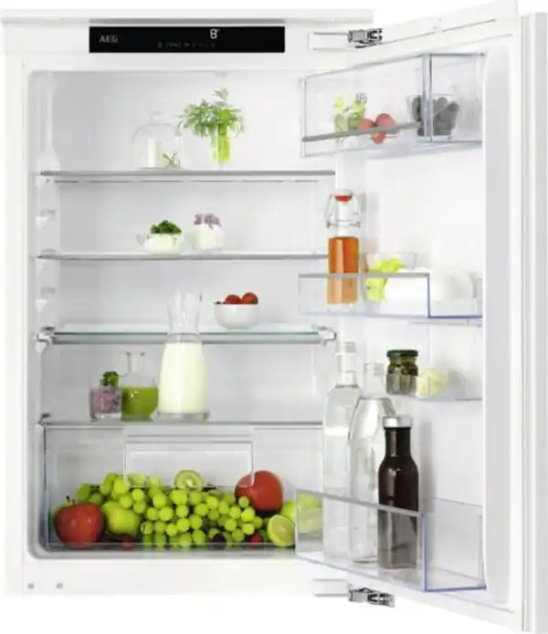 Einbau-Kühlschrank, Vollraum, Festtürmontage, Abtauautomatik Kühlen, Super-Kühlen, Glasablageflächen: 4, Obst-/Gemüsebehälter: 1, LED-Beleuchtung, Display, Touch-Funktion, Energieeffizienzklasse D, Europa, Breite: 55,6 cm, Höhe: 87,3 cm, Tiefe: 54,9 cm