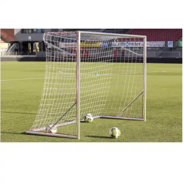 Verstärkte Spezialprofile aus Aluminium verhindern ein Durchbiegen von Pfosten und Latte. Die Ecken sind komplett verschweißt. Der gesamte Rahmen besteht aus einem einzigen Torprofil. Abriebbeständigkeit::Starker Aluminiumrahmen|Stabilität::Standfest auf allen Untergründen – selbst ohne Heringe