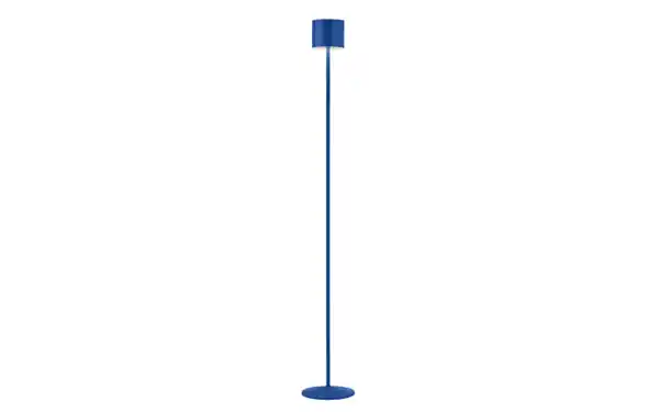 Stilvolle Akku-Stehleuchte aus Metall in Ultramarine blue gefertigt, per mitgelieferter Fernbedienung kann die Lichtfarbe CCT stufenlos von warm bis kalt je nach Stimmung eingestellt werden.