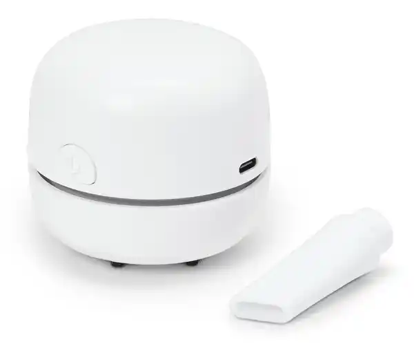 Akku-Tischstaubsauger Farbe: Weiß Material: Kunststoff Bürste 100% Polyamid Maße: Höhe ca. 6 cm Ø ca. 7 cm Länge Kabel 50 cm Inhalt: Inkl. USB-C-Ladekabel, Reinigungsbürste und Bedienungsanleitung Leistung: 3,7 V 500 mAh Batterie-/Akkulaufzeit: Betriebsdauer mit vollgeladenem Akku ca. 30 Minuten Ladezeit ca. 2,5 Stunden Energieeffizienz-Angaben: Informationen zur Entsorgung sowie zu Sammelstellen in Ihrer Nähe finden Sie unter www.tchibo.de Klein und handlich, für alle glatten OberflächenEinfaches Entfernen von Staub, Krümeln, Papierreste und anderem SchmutzAkkubetrieben, 30 Minuten ReinigungszeitMit abnehmbarer verlängerter FugendüseEinfaches Entleerung des AuffangbehältersIdeal für unterwegs, zu Hause und im Büro