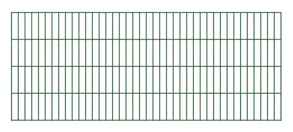 Doppelstab-Gittermatte. Das bewährte System der geschweißten Gittermatten wird überall dort eingesetzt, wo eine langlebige und zuverlässige, zugleich aber preiswerte Einzäunung gewünscht wird. Elemente aus 1 senkrecht und 2 waagerecht verschweißten Stahlrohdrähten. Die senkrechten Stahlrohdrähte haben keinen Überstand.