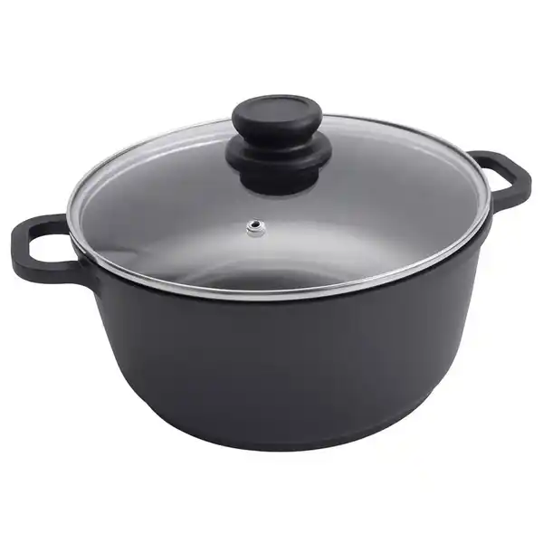 Aluguss-Kochtopf mit Glasdeckel und hochwertiger Antihaftbeschichtung, 4,5 Liter Fassungsvermögen und 24 cm Durchmesser.