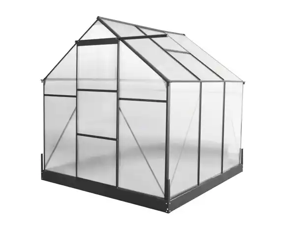 Green Yard Aluminium Gewächshaus mit Dachfenster "Hanoi" , ca. 190 x 190 x 207 cm - Silber Das Green Yard Aluminium-Gewächshaus bietet Hobbygärtnern die perfekte Umgebung Der stabile, rostfreie Aluminiumrahmen macht das Gewächshaus besonders langlebig und widerstandsfähig gegenüber Wind und Wetter Pflegeleichte Materialien und die durchdachte Konstruktion Durch die lichtdurchlässigen, robusten Paneele gelangt reichlich Sonnenlicht ins Innere Das integrierte Dachfenster schafft eine natürliche Belüftung und sorgt jederzeit für ein optimales Klima im Inneren Mit seinen kompakten Maßen nutzt das „Hanoi“ den vorhandenen Platz effizient und passt perfekt in jeden Garten Maße ca. 3,6 m² ca. 190 x 190 x 207 cm Wandhöhe: Ca. 133 cm Größe Tür: Ca 59 x 176cmTechnische Daten ca. 1,2 mm Aluminium Rahmen mit Pulverbeschichtung ca. 0,6 mm starker verzinkter Stahl mit Pulverbeschichtung ca. 4 mm dicke Polycarbonatplatten mit UV-Schutz keine Klammern erforderlich Eine Schiebetür und 1 verstellbare Dachlüftung Regenrinnen inklusiveFarbe SilberLieferumfang 1x Green Yard Aluminium Gewächshaus mit Dachfenster "Hanoi" , ca. 190 x 190 x 207 cm - Silber 4x Wasserauslässen Vollständige Dach- und Wandstützen enthalten 4x Verankerungen für bessere Wundbeständigkeit 1x Fundament Keywords: Aluminium Gewächshaus, Pflanzenhaus, Gewächshaus, Silber, Crystal Plus, Anbauschuppen
