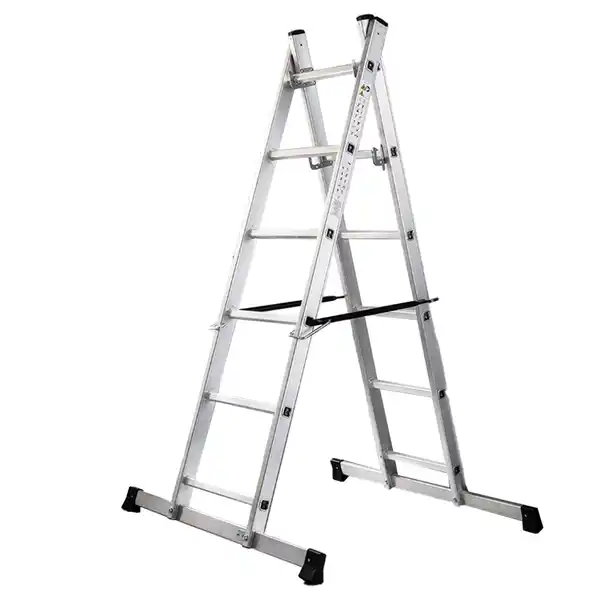 Aluminium Leitergerüst 3 in 1 2 x 6 Stufen pro Seite Lange Schiebeleiter ca. 274 cm Plattform ca. 120 x 40 cm Maximale Traglast 150 kg Einsetzbar als Arbeitsplattform, Steh- oder Anlegeleiter Maße Ca. 131,2 x 95,5 x 166,5 cm Lieferumfang 1x Aluminium Leitergerüst 3 in 1
