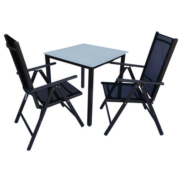Ambia GardenGARTENTISCHGRUPPE, in der Farbe Anthrazit, aus dem Material Metall, Glas, Textil, die Besonderheiten des Artikels sind Stühle klappbar.
