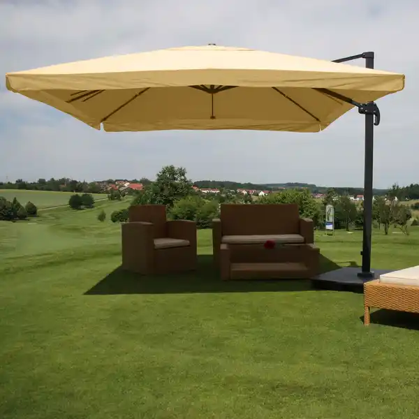 Ampelschirm MCW-A96, Gastronomie, 3x3m (Ø4,24m) Polyester Alu/Stahl 23kg ~ Flap, creme mit Ständer