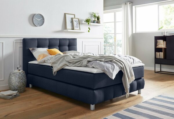 Andas Boxspringbett Salo XXL, in Samtoptik oder Struktur, 6 Breiten in Überlänge 220cm, 4 Härtegrade, Blau