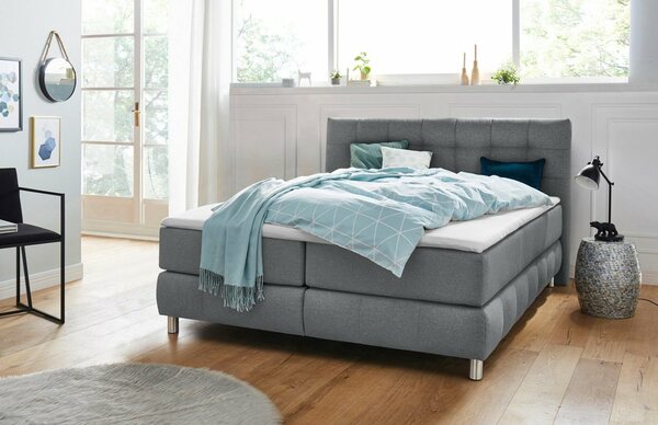 Mit diesem Boxspringbett »Salo XXL« von andas bekommst du Design und Komfort in einem. Die Bonnell-Federkern-Unterbox ist flächenelastisch. Das bedeutet, dass die Federn auf der ganzen Fläche nachgeben und nicht nur an bestimmten Punkten, was für ein sehr weiches und angenehmes Liegegefühl sorgt. Geeignet ist die Matratze mit dem Härtegrad H2 für ein Körpergewicht bis zu 80 kg. Auf der Matratze befindet sich ein Kaltschaum-Topper mit einer Höhe von 5 cm. Er dient als kuschelige Auflage und schützt gleichzeitig die darunterliegende Matratze. Am weichen Kopfteil des Bettes, das 107 cm hoch ist, kannst du dich gemütlich anlehnen und abends vor dem Schlafen deinen Tee genießen. Das Montagematerial ist im Lieferumfang enthalten, sodass du dir keine Gedanken um das richtige Werkzeug machen musst. Bei diesem Produkt ist nur eine Teilmontage erforderlich, wodurch es mit wenig Aufwand schnell aufgebaut ist.