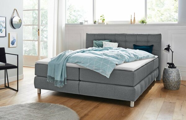 Andas Boxspringbett Salo XXL, in Samtoptik oder Struktur, 6 Breiten in Überlänge 220cm, 4 Härtegrade, Grau