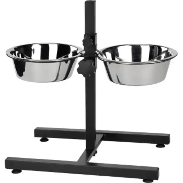 Der ANIONE DOPPELNAPFSTÄNDER ist ein echtes Must-Have für dich und deinen treuen Vierbeiner. Mit seinen rostfreien Edelstahlnäpfen bietet er nicht nur Langlebigkeit, sondern auch eine einfache Reinigung. Die Näpfe kannst du ganz bequem in die Spülmaschine packen. Dein Hund wird es lieben, von nun an rückenschonend zu fressen, da die Höhenverstellbarkeit des Ständers einstellbar ist. Perfekt für große und ältere Hunde, die etwas Komfort beim Fressen schätzen. Dank der höhenverstellbaren Füße steht der Napfständer besonders stabil, selbst wenn dein Hund sich voller Freude auf sein Fressen stürzt. Du kannst die Höhe genau so einstellen, wie es dein Hund am liebsten mag. So wird jede Mahlzeit zum Genuss und du musst dir keine Sorgen um umgekippte Näpfe machen. Einfach alles, was du für entspanntes Füttern brauchst – in einem durchdachten Design. Vorteile im Überblick Rostfreie Edelstahlnäpfe Rückenschonende Futteraufnahme Ideal für große und ältere Hunde Höhenverstellbar Stabiler Stand Einfach zu reinigen Spülmaschinengeeignet