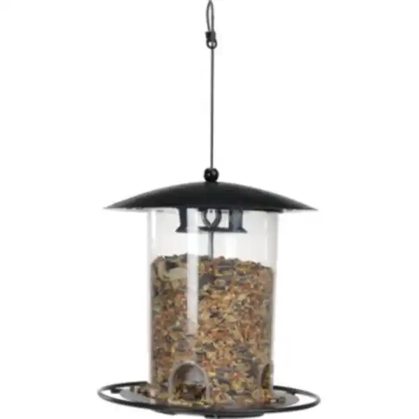 Mit einem Futterplatz und entsprechendem Wildvogelfutter können Sie viele Vogelarten versorgen und unterstützen – am besten das ganze Jahr über und nicht nur im Winter. Einflussfaktoren wie Klimaveränderung, zunehmende Bebauung und Einsatz von Insektiziden erschweren es unseren heimischen Wildvögeln, ausreichend Nahrung für sich und ihre Jungen zu finden. Mit ganzjähriger Zufütterung und dem passenden Vogelfutterhaus können Sie ihnen helfen. Erleben Sie so rund um Ihren Futterplatz fröhliches Treiben und bunte Artenvielfalt, die Freude machen. Der ideale Platz für ein Vogelhaus ist der Garten; auch ein Balkon oder eine Terrasse eignen sich. Der AniOne Futterspender mit Plexiglas kann ganz einfach befüllt werden und verfügt über eine Auffangschale zum Auffangen von herunterfallendem Futter. Das Dach schützt das Futter vor Schmutz und Nässe. Durch die Metallhalterung kann der Futterspender an beliebiger Stelle aufgehängt werden und ist für die Ganzjahresfütterung geeignet. Zudem verfügt der Futterspender über einen Haken unterhalb des Häuschens an dem Futerknödel aufgehangen werden können. Diese bieten den Wildvögeln eine zusätzliche Nahrungsquelle. Maße: ca. 26 x 20 x 30cm