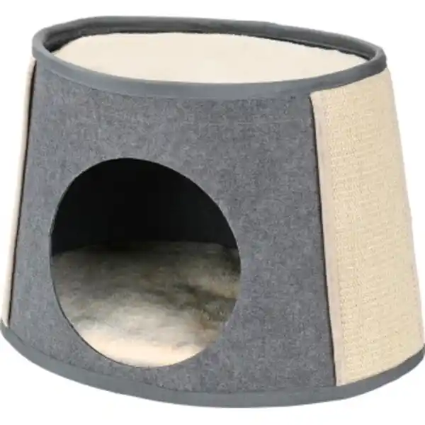 Du suchst eine gemütliche Kratzhöhle für deine Katze? Diese moderne, praktische Kratzhöhle ist perfekt für kleine und mittelgroße Katzen. Sie bietet nicht nur einen Rückzugsort, sondern lädt auch zum Kratzen und Spielen ein. Der Sisalbereich ist ideal, um die täglichen Krallen zu pflegen und deine Möbel zu schonen. Das Kissen lässt sich einfach per Hand waschen, um die Höhle sauber und frisch zu halten. Gefertigt aus robustem Polyester und Sisal, misst die Höhle ca. 50 x 40 x 36cm. Deine Katze wird es lieben, sich darin zu verstecken und zu spielen! Vorteile im Überblick Moderne, praktische Kratzhöhle Perfekt zum Kratzen und Spielen Geeignet für kleine und mittelgroße Katzen Unterstützt die Krallenpflege Kissen leicht per Hand waschbar Robustes Material aus Polyester und Sisal Maße: ca. 50 x 40 x 36cm