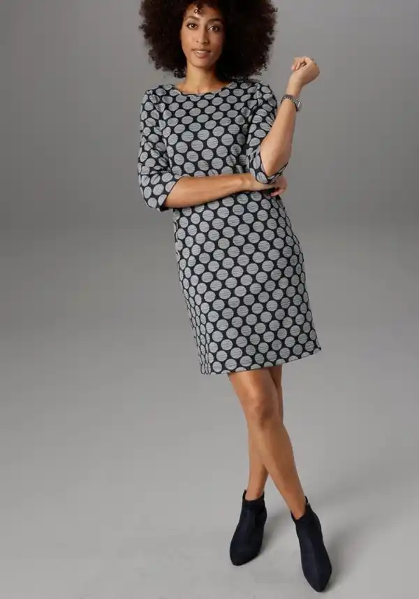 Modisches Jacquardkleid von Aniston Selected. Mit Punkten &, Streifen. Mit hübschem Rundhals. Figurumspielende Passform. Maschinenwäsche.