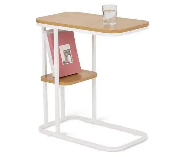 Anstelltisch Farbe: Gestell weiß Ablagefläche Eichenoptik Material: Gestell Stahl, pulverbeschichtet Ablageflächen mitteldichte Holzfaserplatte, melaminharzbeschichtet Bodenschoner 100% Polypropylen Maße: B x H x T ca. 52,5 x 58,5 x 29,8 cm B x H x T Ablagefläche ca. 26,6 x 27,5 x 19,8 cm Höhe Fußgestell ca. 4,7 cm Inhalt: Inkl. Bodenschonern, Montagematerial und -anleitung Gewicht: ca. 5,5 kg Tragkraft: Tisch max. 8 kg Ablagefläche max. 6 kg Sonstige Hinweise: Artikel wird zerlegt geliefert Lieferung in 1 Packstück Passend für Sitzmöbel oder Betten Mitteldichte Holzfaserplatte mit einer Melaminharzbeschichtung in HolzoptikMit großer Ablagefläche Kleine Ablagefläche, z.B. für Dekoration Vielseitig einsetzbar Inkl. höhenverstellbarer Bodenschoner