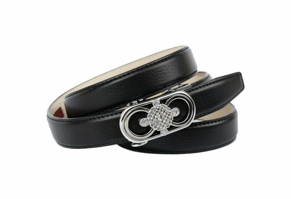 Schmal und schick: Der Gürtel ist 2,4 cm breit und kann daher gut zu schicken Hosenanzügen oder Blusen getragen werden, um einen eleganten Stil zu unterstreichen. Mit farblich abgestimmten Schuhen beweist du modisches Fingerspitzengefühl und dein Outfit für Theater- oder Restaurantbesuch steht!
