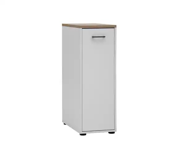 Apothekerschrank »Solea«, matt weiß Farbe: Matt weiß Deckplatte Eichendekor Füße schwarz Griffe anthrazit Material: Melaminharzbeschichtete Spanplatte Griffe, Füße und Beschläge Metall Maße: B x H x T ca. 32,6 x 95,8 x 60 cm B x H x T Fächer oben ca. 25,4 x 37,5 x 48,5 cm, unten ca. 25,4 x 40 x 48,5 cm Stärke Deckplatte ca. 2,2 cm Griff Länge ca. 11,5 cm Füße ca. 1,8–2,7 cm Inhalt: Inkl. Montageanleitung Gewicht: Ca. 35 kg Tragkraft: Fächer je max. 15 kg Gebrauchsanweisung: Mit einem feuchten, nicht nassen Tuch reinigen Pflegeprodukte sind nicht notwendig Warnhinweise: Beiliegende Montageanleitung vollständig beachten Sonstige Hinweise: Artikel wird zerlegt geliefert Lieferung in 2 Packstücken Anlieferung frei Haus Keine Inselbelieferung B x H x T Packstücke 1x ca. 34 x 13 x 69,5 cm, 1x ca. 61,5 x 6 x 101 cm Hersteller-Artikel-Nummer: 702051 Hersteller: W. Schildmeyer GmbH & Co. KG, Sachsenweg 55, 32547 Bad Oeynhausen E-Mail: info@w-schildmeyer.de Front mit ganzflächigem Vollauszug und 2 FächernDeckplatte helles Eichendekor mit fühlbarer HolzstrukturFüße höhenverstellbar um Unebenheiten im Boden auszugleichenVielseitig mit weiteren Elementen der Serie kombinierbarEinfache Montage mit verständlicher AufbauanleitungMADE IN GERMANY