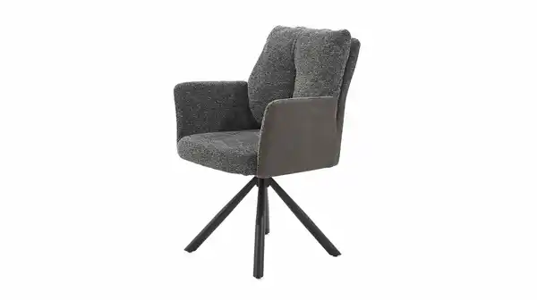 Ausgestattet mit Taschenfederkern-Polsterung sitzen Sie auf dem Esszimmerstuhl komfortabel und bequem - auch bei längeren Abendessen mit Freunden und Familie. Die hochwertige Polsterung passt sich dabei perfekt an den Körper an und bietet gleichmäßige Unterstützung für eine optimale Körperhaltung. Ihre Arme können Sie auf den hohen Armlehnen ablegen und bequem ausruhen. Der Drehstuhl ermöglicht zudem anregende Gespräche mit dem Sitznachbarn, indem er sich problemlos um 360 Grad drehen lässt. Und dank Nivellierung kehrt der Sitz nach dem Aufstehen automatisch wieder in seine Ausgangsposition zurück. So herrscht stets Ordnung am Esstisch. Zu guter Letzt erleichtert ein praktischer Griff im Rücken das Bewegen des Armlehnstuhls am Esstisch, sodass Sie diesen jederzeit mühelos neu platzieren können. SHELBY ist ein Stuhl, der rundum begeistert und Ihr Zuhause ein Stück komfortabler macht.