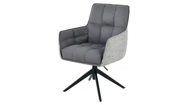 Design trifft Dynamik - Unser Armlehnstuhl POMBA wird mit seiner Kombination aus dunkelgrauem Alcantara-Leder und hellgrauem Webstoffbezug zum modernen Highlight in Ihrem Essbereich. Die stilvollen Steppnähte an Rücken und Sitz unterstreichen das hochwertige Design und sorgen für zusätzliche Tiefe. Das schwarze, pulverbeschichtete Metallgestell mit seinen konisch zulaufenden Beinen rundet das Design gekonnt ab. Damit wird der Armlehnstuhl POMBA zu einem stilbewussten Möbelstück, welches sich mühelos in verschiedene Einrichtungsstile integrieren lässt.